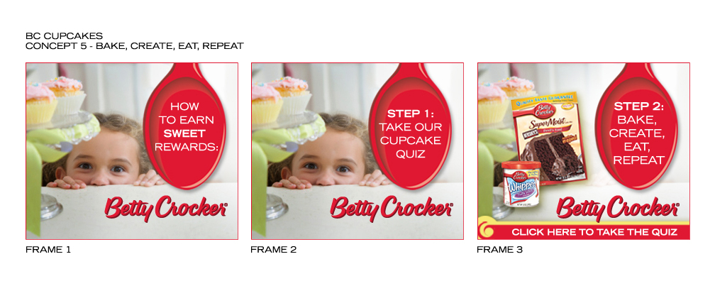 I turned in my work and BAM: I was hired as a freelancer writing banner ad copy for General Mills Betty Crocker Cupcakes. And then I wrote for Hamburger Helper…and then Simply Potatoes…and then Better’n Eggs…and then Crystal Farms Cheese…and, you get it. (Oh, and check out those first Betty Crocker storyboards below…how fun is that!?)
