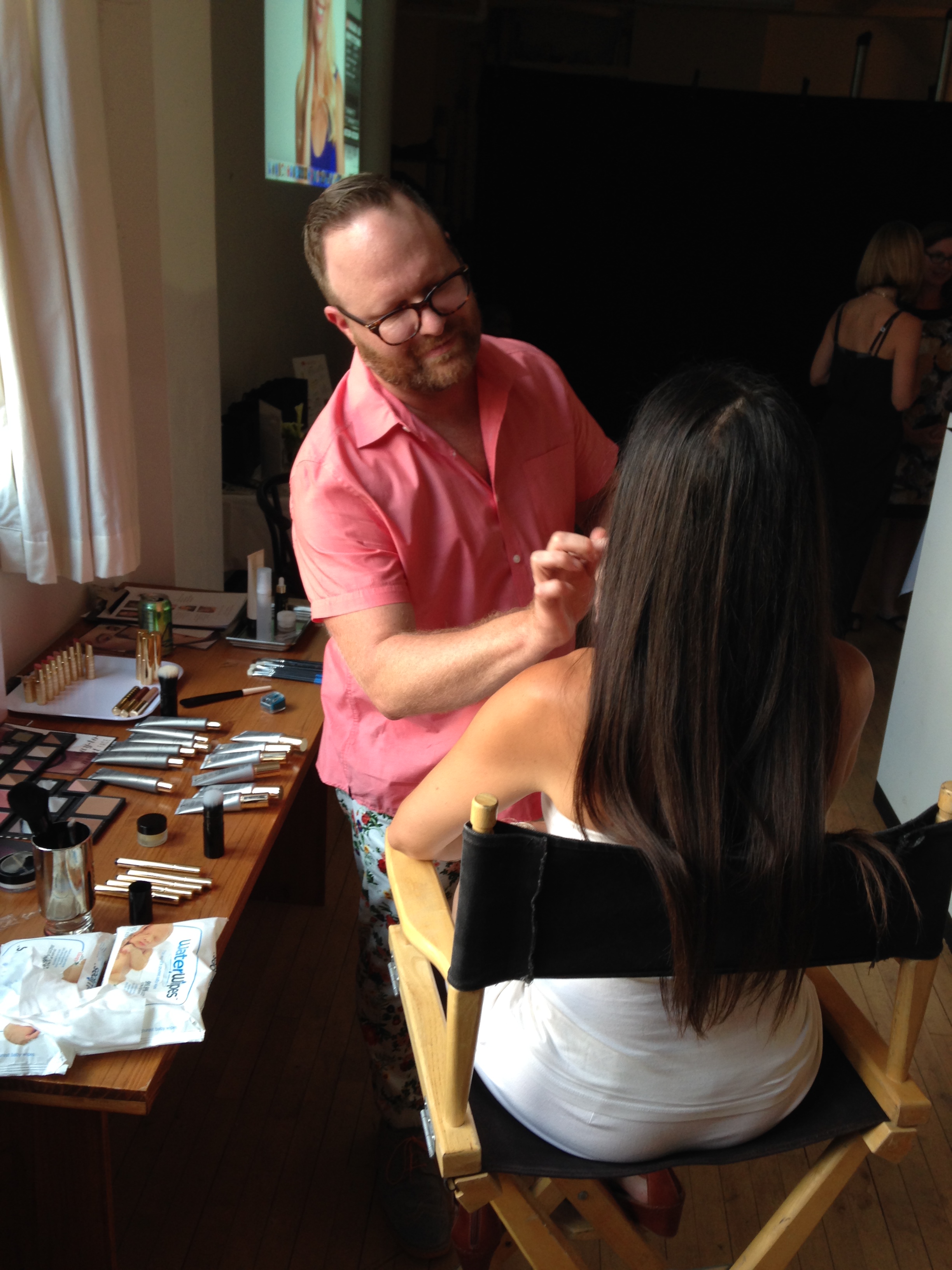 And here’s the deal with me: I never wear makeup unless I’m going to a casting call or I’m asked to arrive at a shoot “camera ready.” Otherwise I’m just a mascara and lip balm chick. I truly cannot stand makeup on my face for a long time (probably because most of the makeup I have had applied to my face is really full of icky junk). Coming home from shoots has me making a beeline for the shower because I cannot wait to wash off the layers of, well, toxins, I guess.