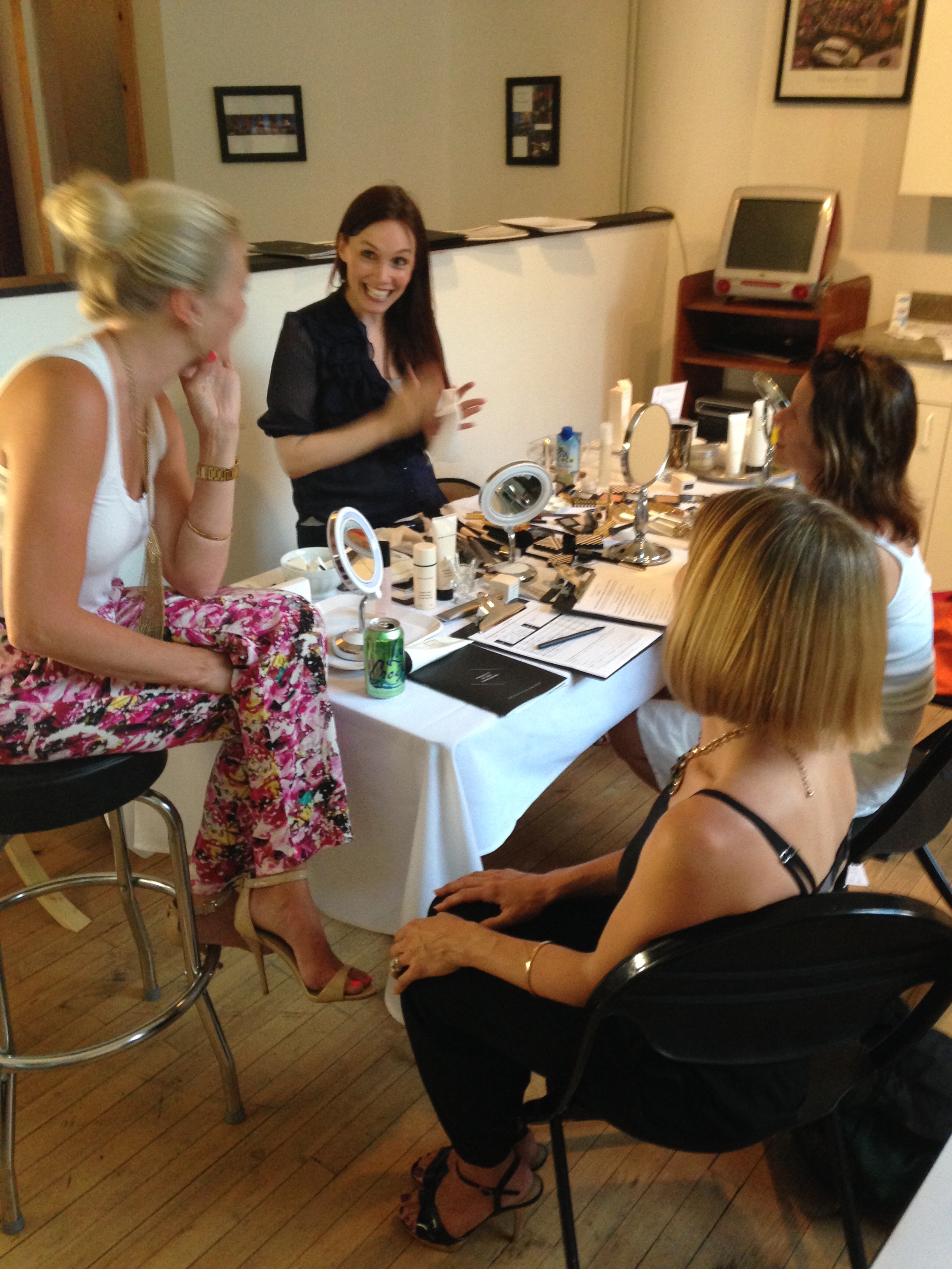 The makeup felt good going on and it held up. I hardly noticed I was wearing it. Annie consulted with guests about their cosmetic needs and desires and the entire night was filled with such a positive, beautiful energy. Look how fun!